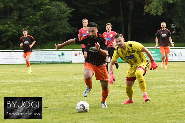 Fussball, Rheinlandpokal 2021/22, Runde 1, SG Lautzert-Oberdreis-Berod-Wahlrod (rot/schwatz) vs. SG HWW Emmerichenhain-Niederrossbach (schwatz/orange), 06.08.2021 |