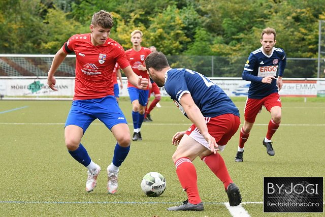 Fussball, Rheinlandliga, SG Neitersen-Altenkirchen (rot/blau) vs. FSV Trier-Tarforst (schwarz/rot), 03.10.2021 |