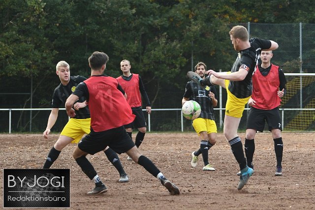 Fussball, Kreisliga B Nord, VfL Oberlahr-Flammersfeld (schwarz/gelb) vs. FV Rheinbrohl (Leibchen/schwarz), 17.10.2021 |
