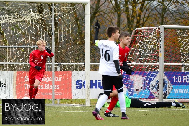 Fussball-Rheinlandliga C-Junioren, JSG Neitersen (rot) vs SSV Heimbach-Weis (weiß/schwarz), 21.11.2021 |