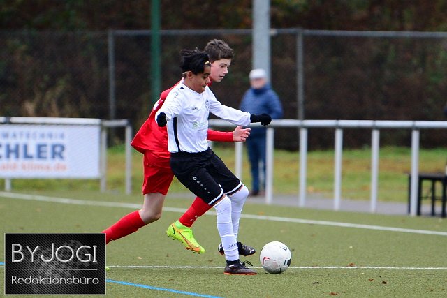 Fussball-Rheinlandliga C-Junioren, JSG Neitersen (rot) vs SSV Heimbach-Weis (weiß/schwarz), 21.11.2021 |