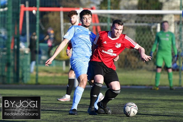 Fussball, Vorbereitungsspiel, SG Malberg (blau) vs TuS Burgschwalbach (rot/schwarz), 12.02.2022 |
