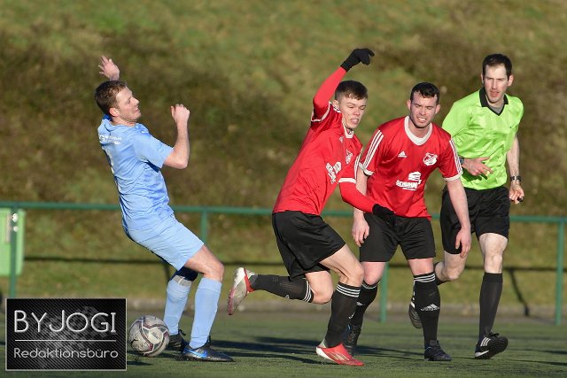 Fussball, Vorbereitungsspiel, SG Malberg (blau) vs TuS Burgschwalbach (rot/schwarz), 12.02.2022 |