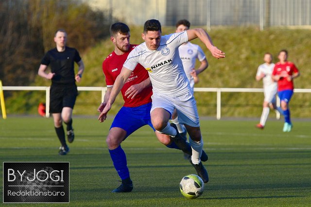 Fussball-Rheinlandliga, SG Neitersen-Altenkirchen (rot/blau) vs. VfB Wissen (weiß), 05.03.2022 |