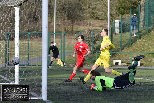 Fussball, Rheinlandliga, SG Malberg (rot) vs TuS Kirchberg (gelb) , 12.03.2022 |