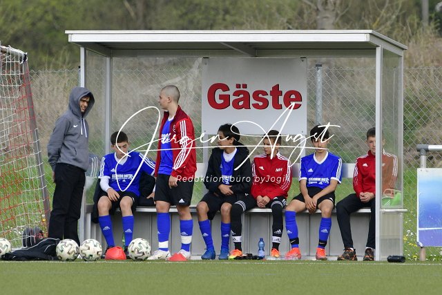 Fussball, Rheinlandpokal Viertelfinale, C-Junioren, JSG Neitersen-Altenkiirchen (rot) vs. Spfr. Eisbachtal (blau/schwarz), 23.04.2022 |