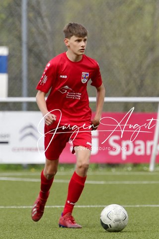 Fussball, Rheinlandpokal Viertelfinale, C-Junioren, JSG Neitersen-Altenkiirchen (rot) vs. Spfr. Eisbachtal (blau/schwarz), 23.04.2022 |