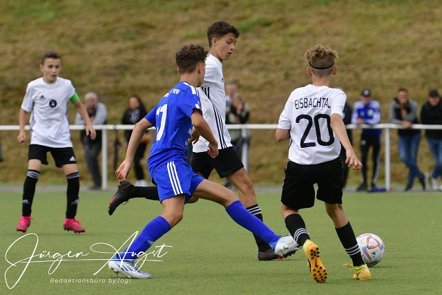 Fussball, Rheinlandliga C-Junioren, JFV Wolfstein (blau) vs. Spfr. Eisbachtal II (weiß/schwarz), 10.09.2022 |
