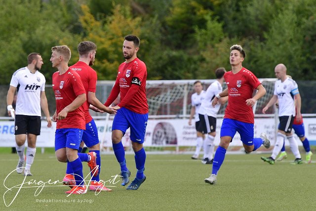 Fussball, Rheinlandliga, SG Neitersen-Altenkirchen (rot/blau) vs. TuS Mayen (weiß/schwarz), 25.09.2022 |