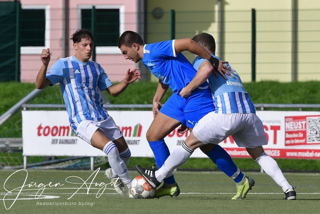 Fussball, Bezirksliga Ost, Spvgg. EGC Wirges (blau) vs SF Wallmanroth (blau-weiss), 16.10.2022 |