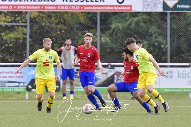 Fussball, Rheinlandliga, SG Altenkirchen-Neitersen (rot-blau) vs. FC Metternich (gelb), 23.10.2022 |