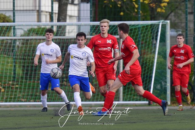 Fussball, Rheinlandliga, SG Malberg (rot) vs. VfB Wissen (weiss/blau), 29.10.2022 |