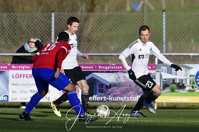 Fussball, Rheinlandliga, SG Altenkirchen-Neitersen (rot/blau) vs. FC Hochwald-Zerf (weiß/schwarz), 25.02.2023 |