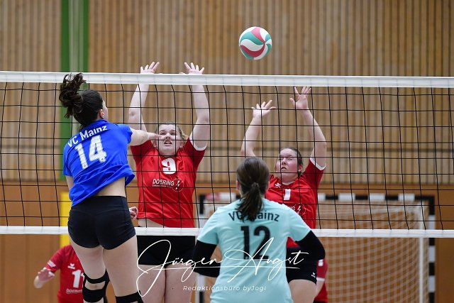Volleyball, Rheinland-Pfalz Liga Frauen, SSG Etzbach (rot) vs. VC Mainz (blau), 04.03.2023 |