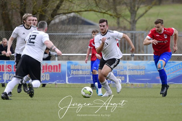 Fusball, Kreisliga B2, SG Altenkirchen-Neitersen II (rot/blau) vs. SG Mittelhof-Niederhoevels (weiss/schwarz), 19.03.2023 |