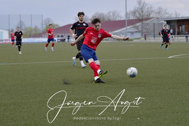 Fussball, Rheinlandliga A-Junioren, JSG Neitersen (rot/bau) vs. FC Rot-Weiss Koblenz (schwarz), 21.04.2023 |