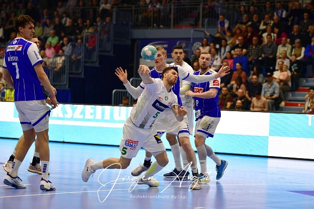 Filip Kuzmanovski (HSG Wetzlar / #5) kommt am Kreis zum Wurf, Handball, 1 Bundesliga, VfL Gummersbach vs. HSG Wetzlar, 27. Spieltag, Schwalbe Arena Gummersbach, 23.04.2023 Foto: Eibner-Pressefoto/Juergen Augst |