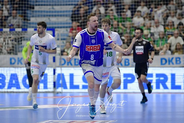 Jubel bei Lukas Blohme (VfL Gummersbach / #8) Handball, 1 Bundesliga, VfL Gummersbach vs. HSG Wetzlar, 27. Spieltag, Schwalbe Arena Gummersbach, 23.04.2023 Foto: Eibner-Pressefoto/Juergen Augst |