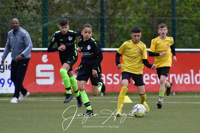 Fussball, Rheinlandliga D-Junioren, JSG Hammer Land - Niederhausen (schwarz) vs- TuS Koblenz (gelb-schwarz), 29.04.2023 |