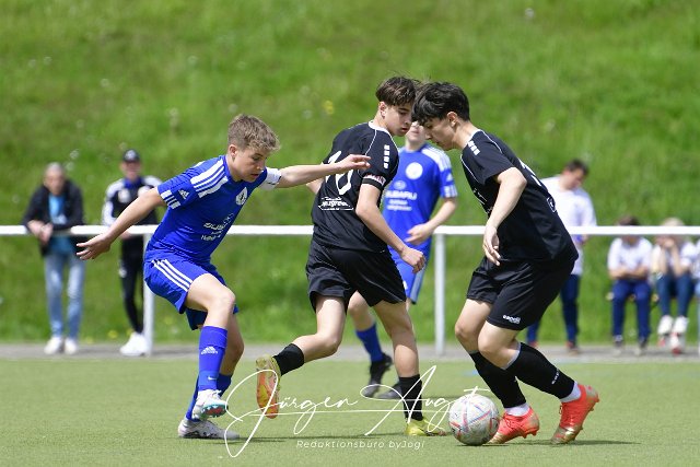 Fussball, Rheinlandliga C-Junioren, JFV Wolfstein Westerwald-Sieg (blau) vs. FC Rot-Weiss Koblenz (Schwarz), 06.05.2023 |