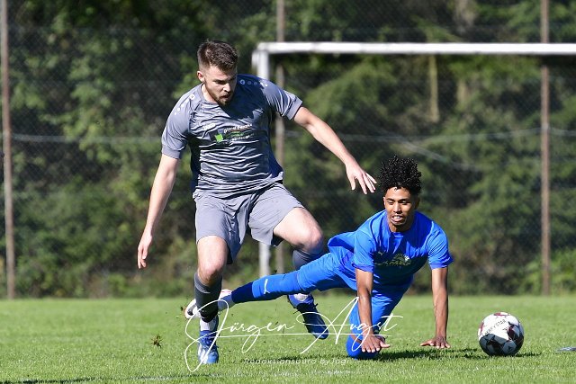 Fussball, Bezirksliga Ost, SG Müschenbach (blau) vs. SG Alpenrod (grau), 24.09.2023 |
