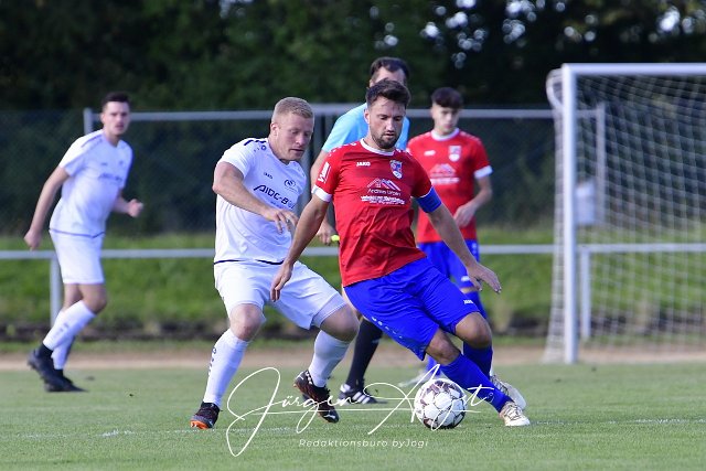 Fussball, Bezirksliga Ost, SG Neitersen (rot/blau) vs. SF Höhr-Grenzhausen (weiß) , 24.09.2023 |