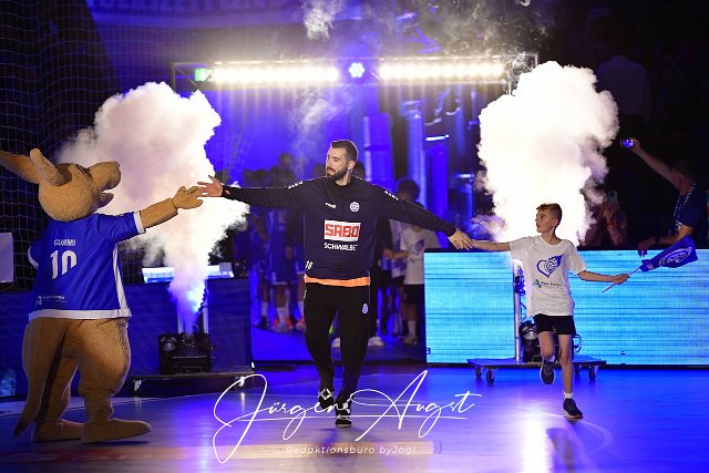 Tibor Ivanisevic (VfL Gummersbach16) bei der Einlaufpraesentation in der Schwalbe Arena in Gummersbach VfL Gummersbach vs. HC Erlangen, Handball, Bundesliga, 7. Spieltag, Saison 2023/24, 28.09.2023 Foto: Eibner-Pressefoto/Juergen Augst |