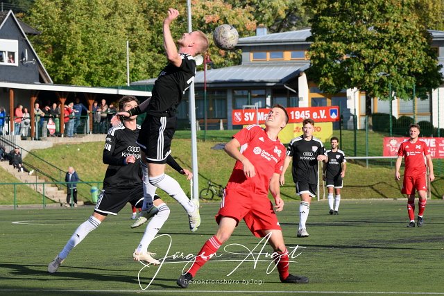 Fussball, Rheinlandliga, SG Malberg (rot) vs. FV Hunsrueckhoehe Morbach (schwarz), 14.10.202 |