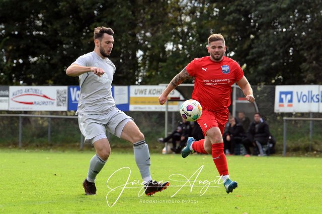 Fussball, Bezirksliga Ost, SG Weitefeld (rot) vs. TuS Burgschwakbach (grau), 15.10.2023 |