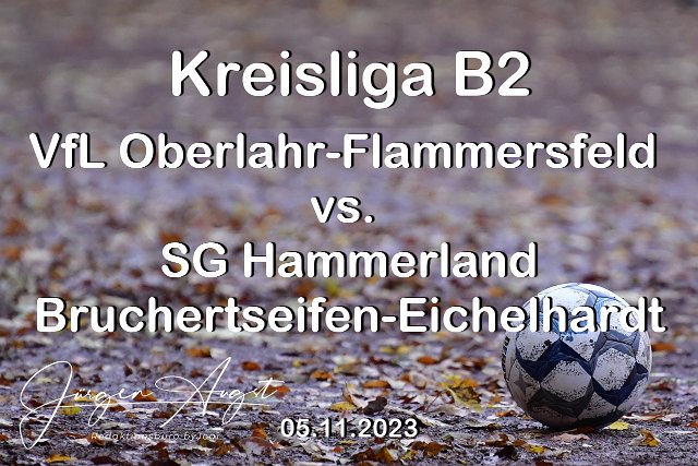Fussball, Kreisliga B2, VfL Oberlahr-Flammersfeld (gelb/schwarz) vs. SG Hammerland Bruchertseifen-Eichelhardt (hellblau/weiß), 05.11.2023 |