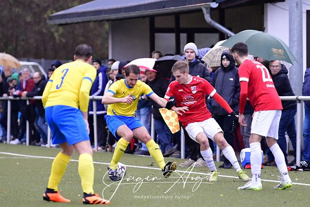 Fussball, Bezirksliga Ost, SG Neitersen-Altenkirchen (rot/weiß) vs. SG Müschenbach (Gelb/blau), 26.11.2023 |