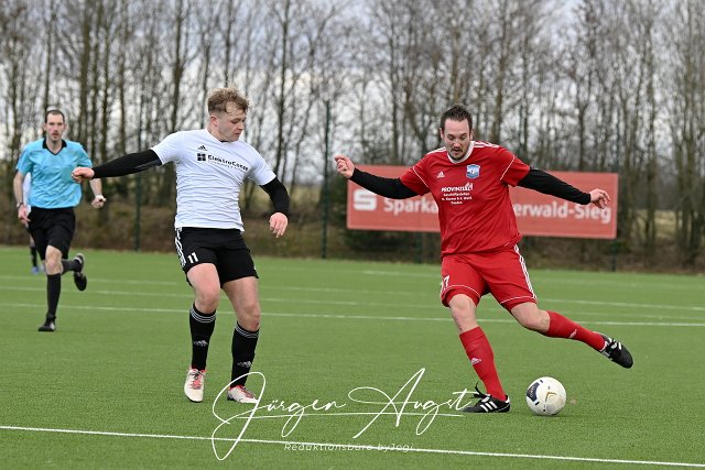 Fussball, Kreisliga B2,SG Weitefeld Langenbach-Nauroth II (rot) vs. SG Gebhardshainer Land-Steineroth-Dauersberg II (weiß/schwarz), 25.02.2024 |