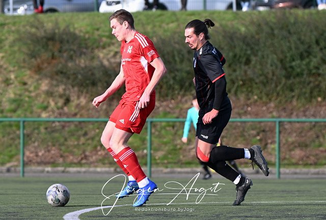 Fussball, Rheinlandliga, SG Malberg (rot) vs. FSV Salmrohr (schwarz), 02.03.2024 |