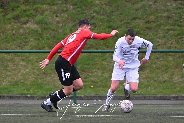 Fussball, Rheinlandliga, SG Malberg (weiß) vs. FSG Ehrang (rot/schwarz), 23.03.2024 |