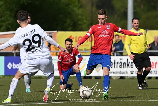 Fussball, Bezirksliga Ost, SG Neitersen-Altenkirchen (rot/blau) vs. VfB Linz (weiß), 21.04.2024 |