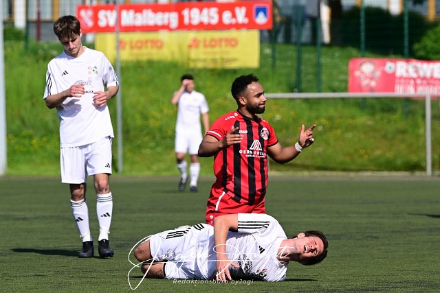 Fussball, Rheinlandliga, SG Malberg (weiss) vs. SG Schneifel (rot), 11.05.2024 |
