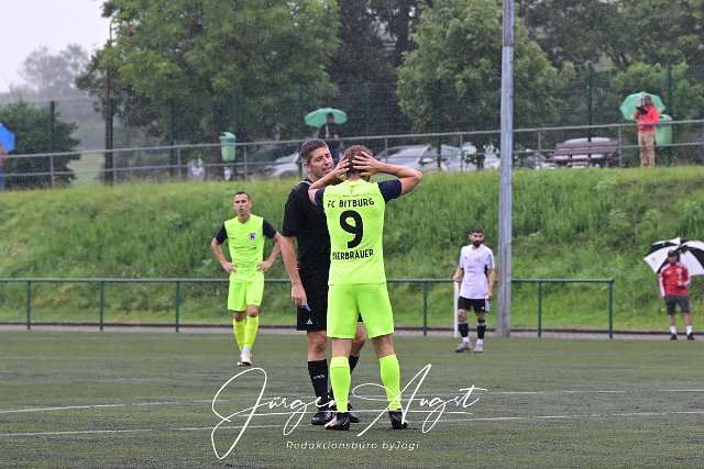 Fussball, Rheinlandliga, SG Malberg (weiß/schwarz) vs. FC Bitburg (neon), 17.08.2024 |