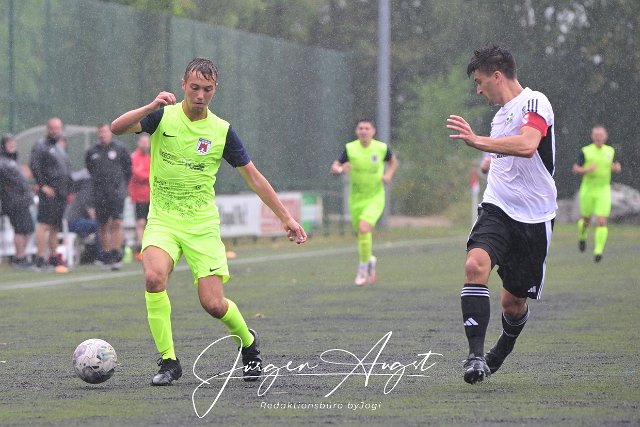 Fussball, Rheinlandliga, SG Malberg (weiß/schwarz) vs. FC Bitburg (neon), 17.08.2024 |