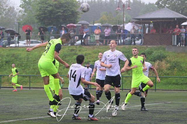 Fussball, Rheinlandliga, SG Malberg (weiß/schwarz) vs. FC Bitburg (neon), 17.08.2024 |