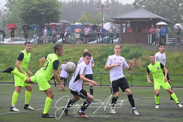 Fussball, Rheinlandliga, SG Malberg (weiß/schwarz) vs. FC Bitburg (neon), 17.08.2024 |