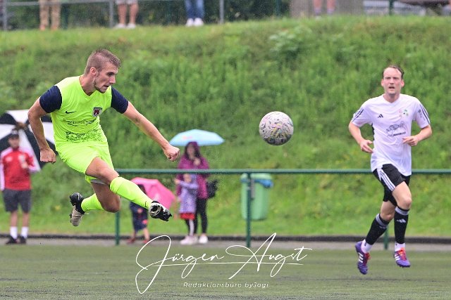 Fussball, Rheinlandliga, SG Malberg (weiß/schwarz) vs. FC Bitburg (neon), 17.08.2024 |