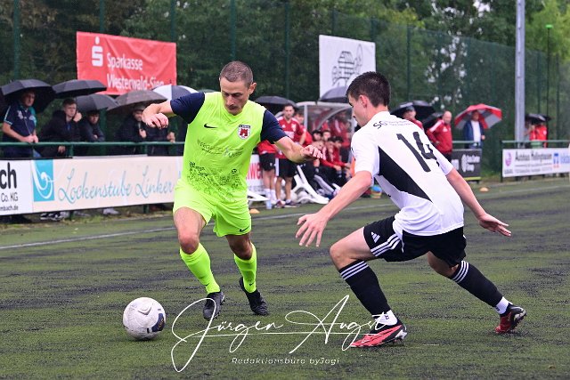 Fussball, Rheinlandliga, SG Malberg (weiß/schwarz) vs. FC Bitburg (neon), 17.08.2024 |