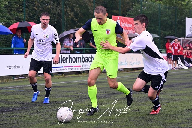 Fussball, Rheinlandliga, SG Malberg (weiß/schwarz) vs. FC Bitburg (neon), 17.08.2024 |