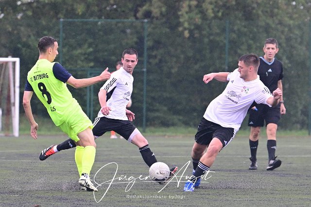 Fussball, Rheinlandliga, SG Malberg (weiß/schwarz) vs. FC Bitburg (neon), 17.08.2024 |