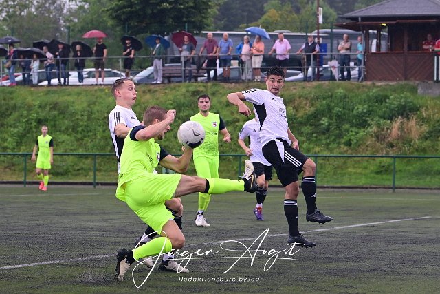 Fussball, Rheinlandliga, SG Malberg (weiß/schwarz) vs. FC Bitburg (neon), 17.08.2024 |