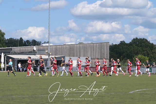 Fussball, Kreisliga B3, SSV Weyerbusch I (schwarz/weiss) vs. SG Lautzert-Oberdreis II (rot), 25.08.2024 |