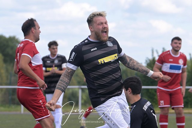 Fussball, Kreisliga B3, SSV Weyerbusch I (schwarz/weiss) vs. SG Lautzert-Oberdreis II (rot), 25.08.2024 |