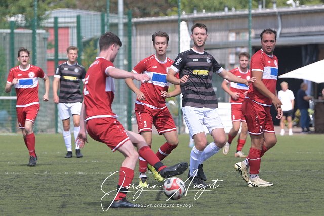 Fussball, Kreisliga B3, SSV Weyerbusch I (schwarz/weiss) vs. SG Lautzert-Oberdreis II (rot), 25.08.2024 |