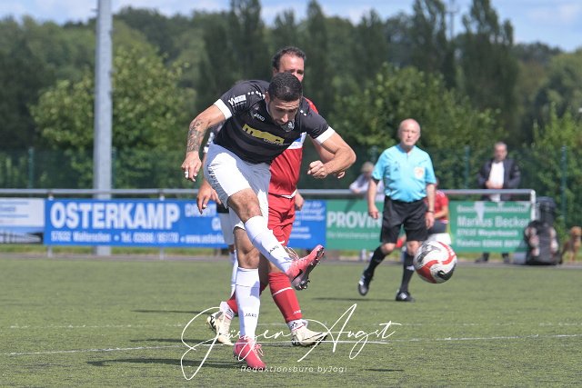Fussball, Kreisliga B3, SSV Weyerbusch I (schwarz/weiss) vs. SG Lautzert-Oberdreis II (rot), 25.08.2024 |