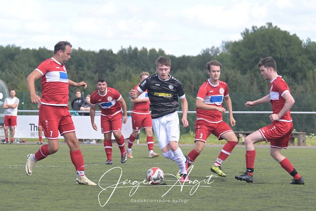 Fussball, Kreisliga B3, SSV Weyerbusch I (schwarz/weiss) vs. SG Lautzert-Oberdreis II (rot), 25.08.2024 |